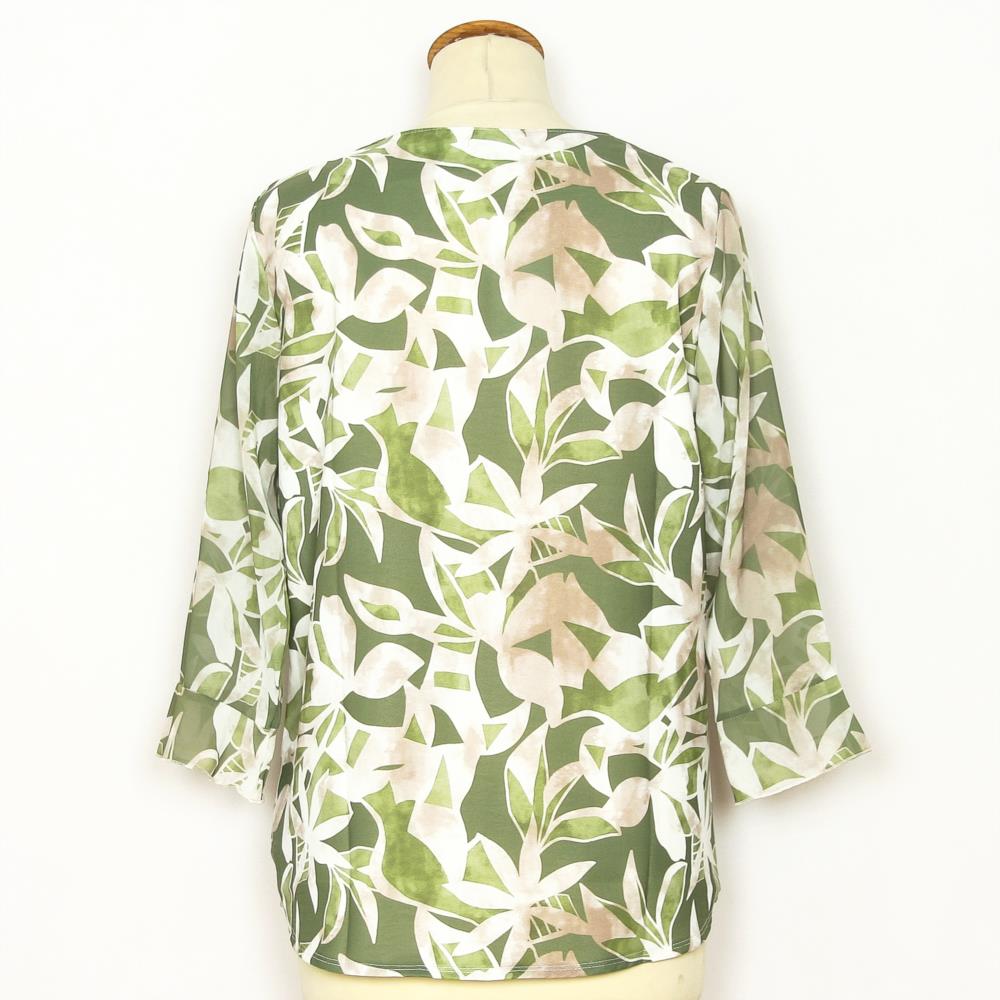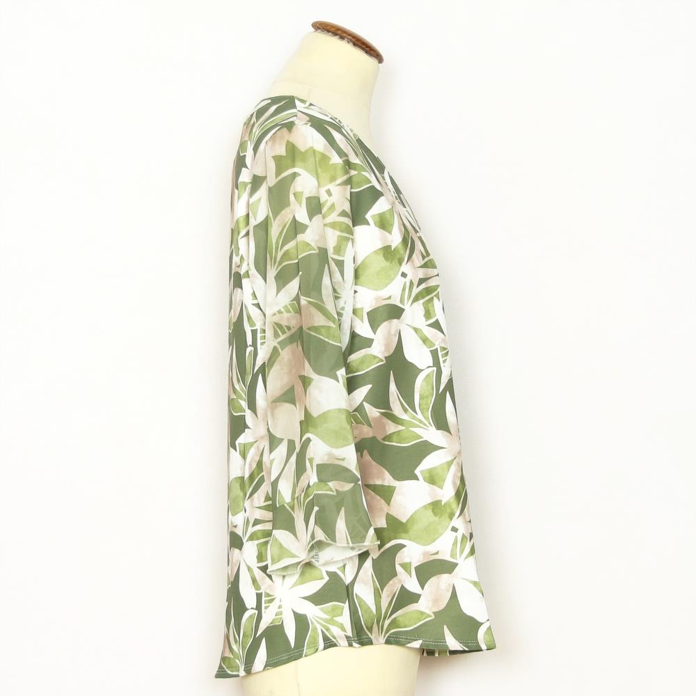 Blusa estampada manga al codo pico de mujer