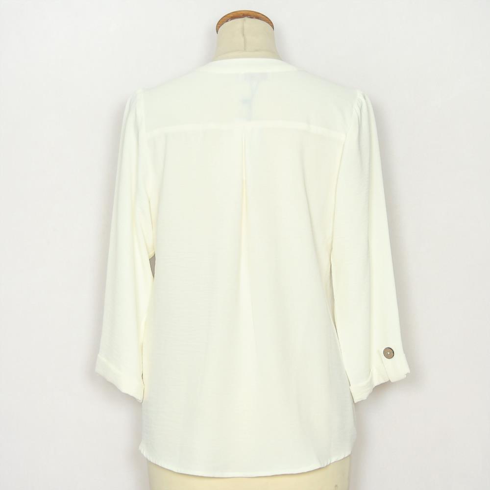 Blusa lisa manga al codo con cuello de pico para mujer