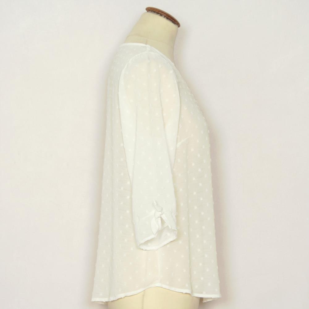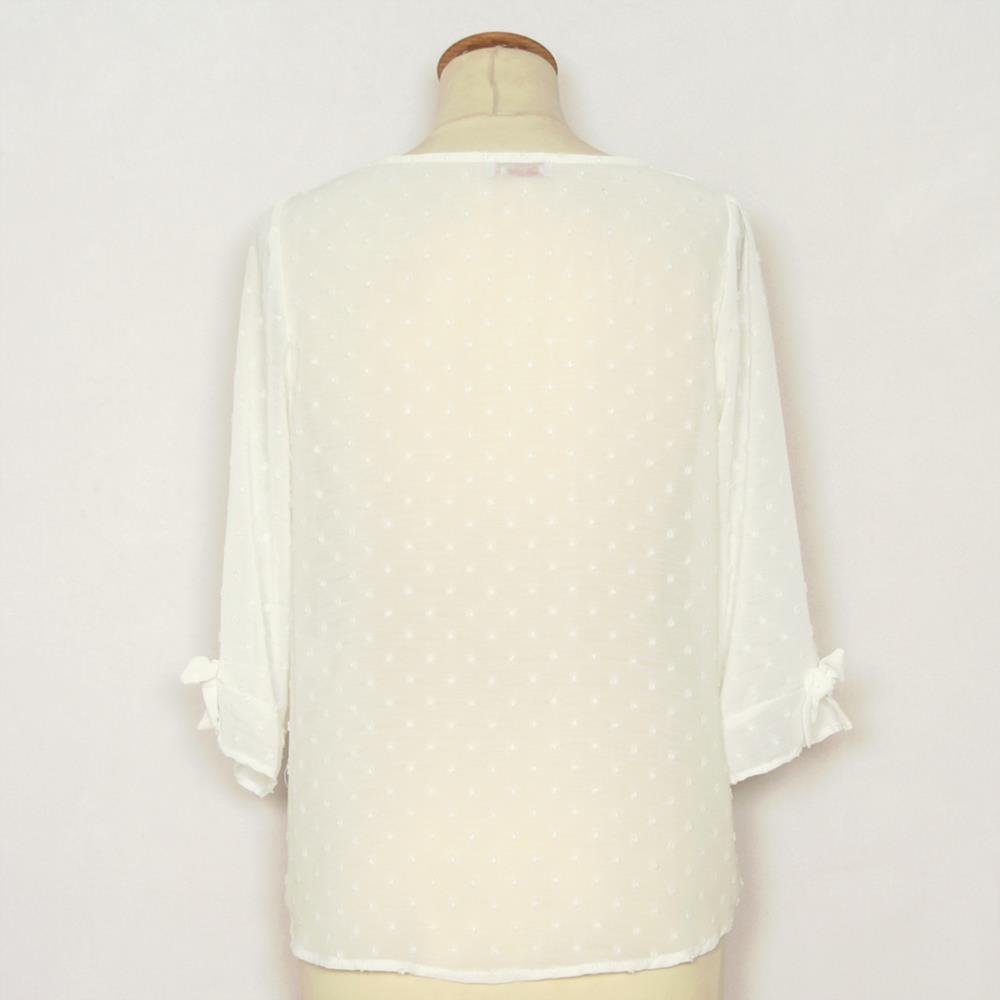 Blusa en plumeti con manga codo con lazo decorativo para mujer