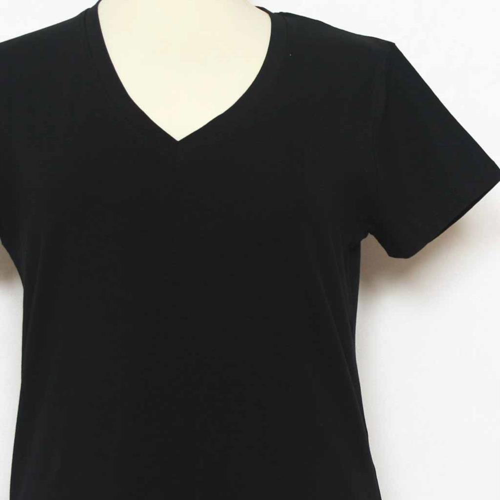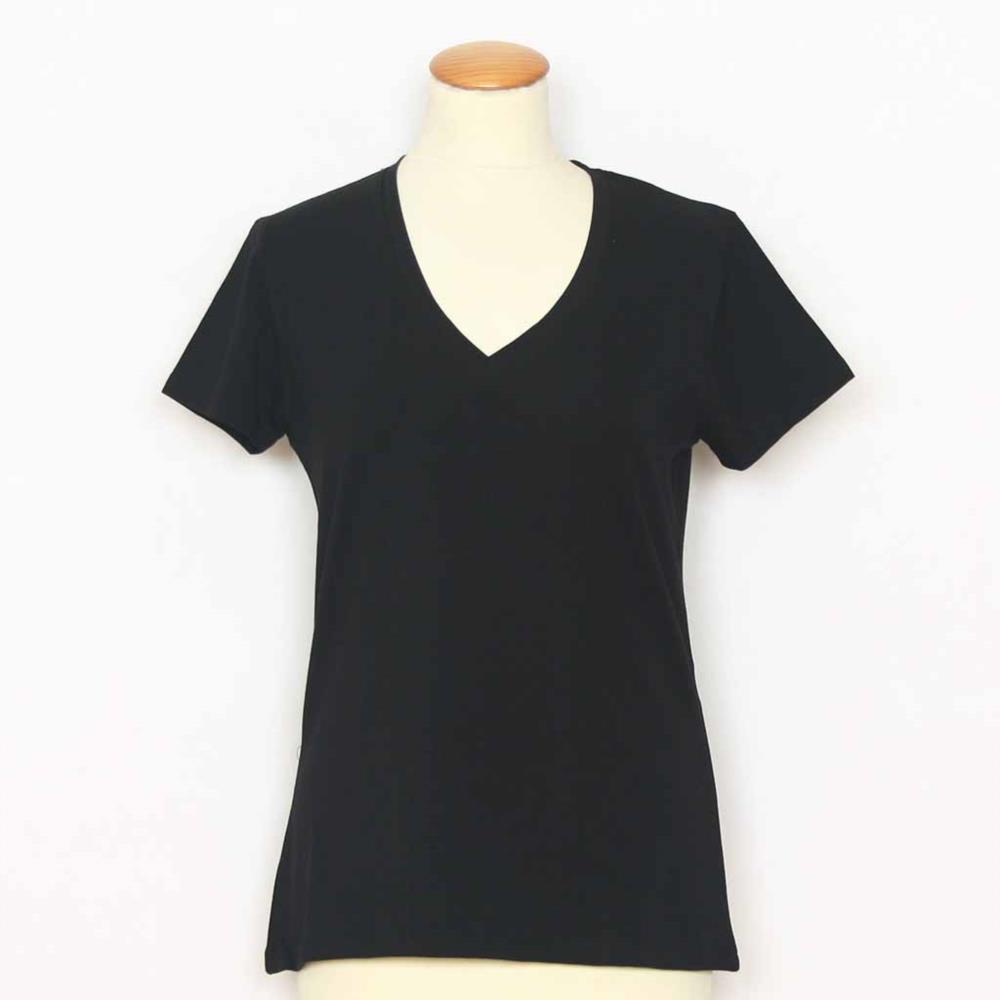Camiseta lisa de manga corta con cuello de pico para mujer