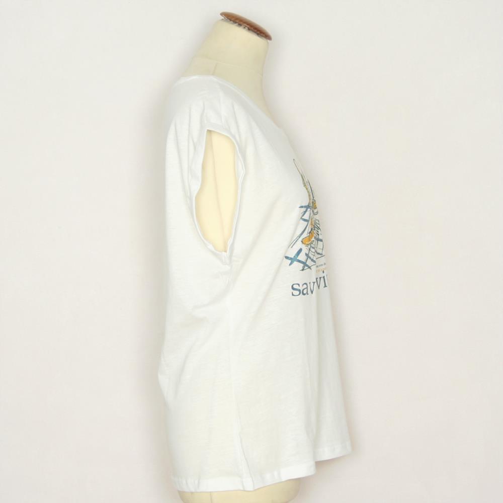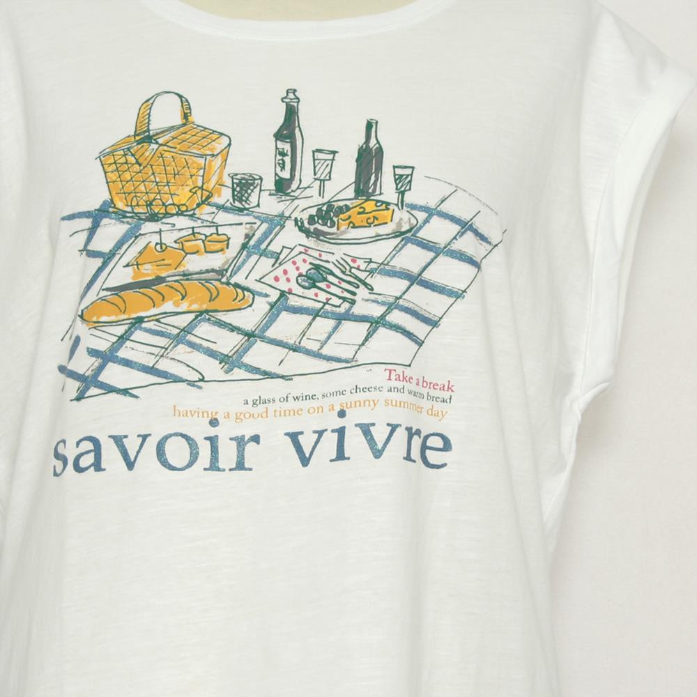 Camiseta de manga corta con vuelta y estampado frontal con motivo picnic para mujer