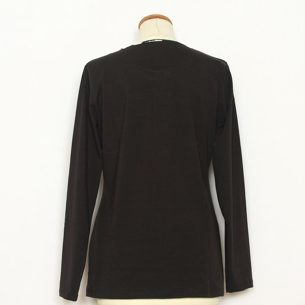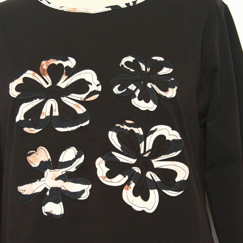 Camiseta de manga larga con vivo a contaste en el cuello y apliques en forma de flores para mujer