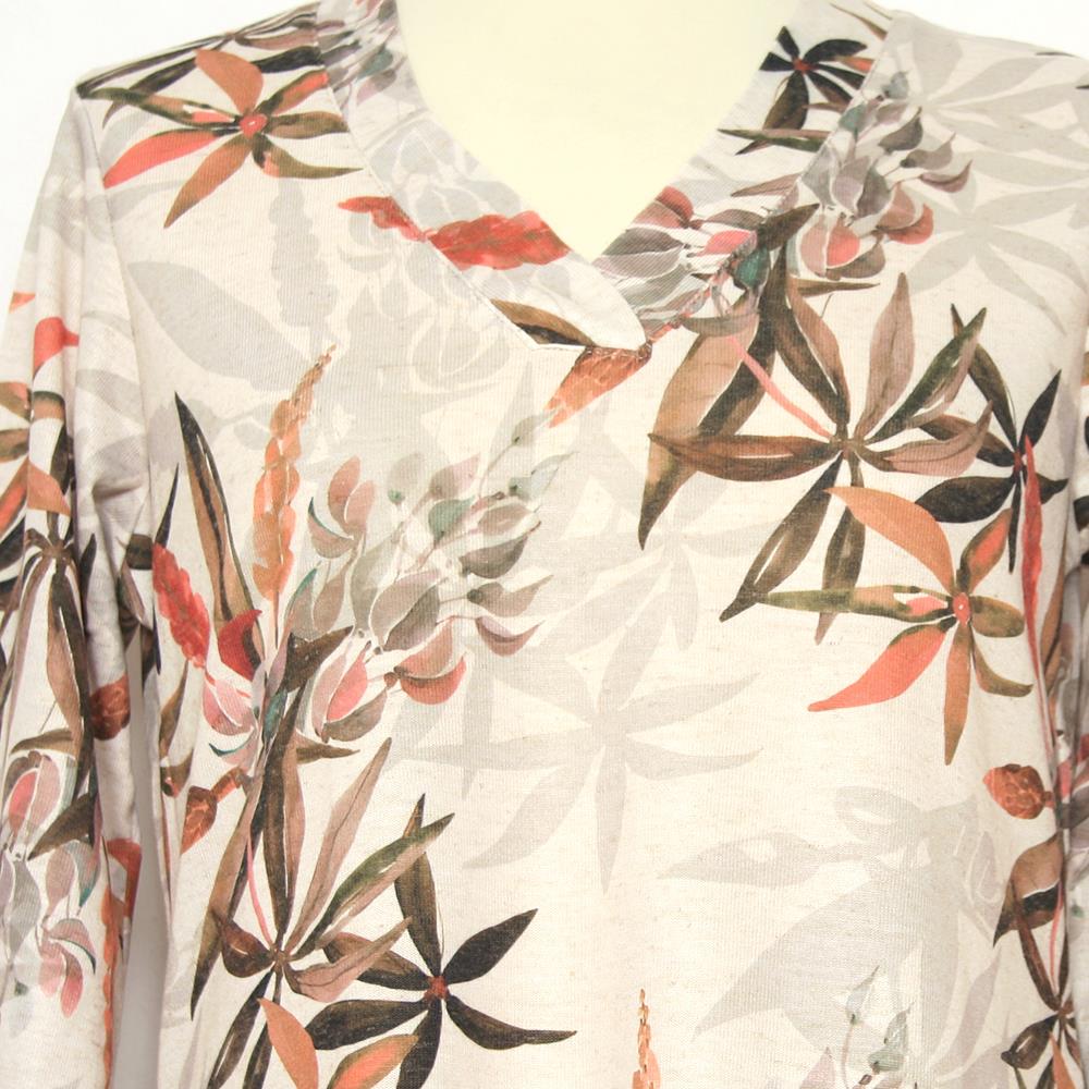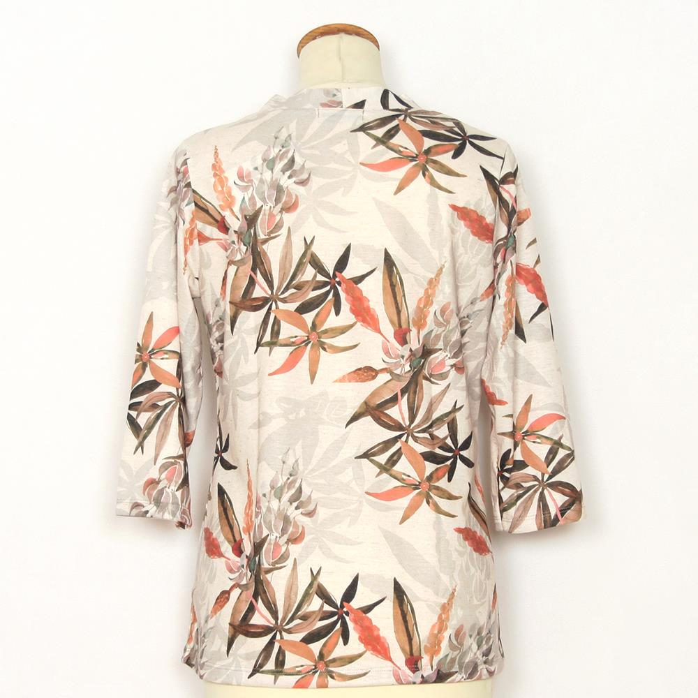Jersey en punto fino con manga al codo en mezcla de lino con estampado hojas para mujer