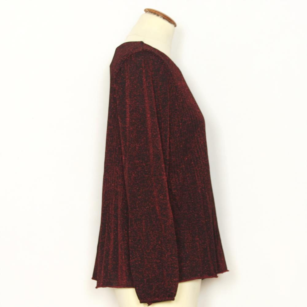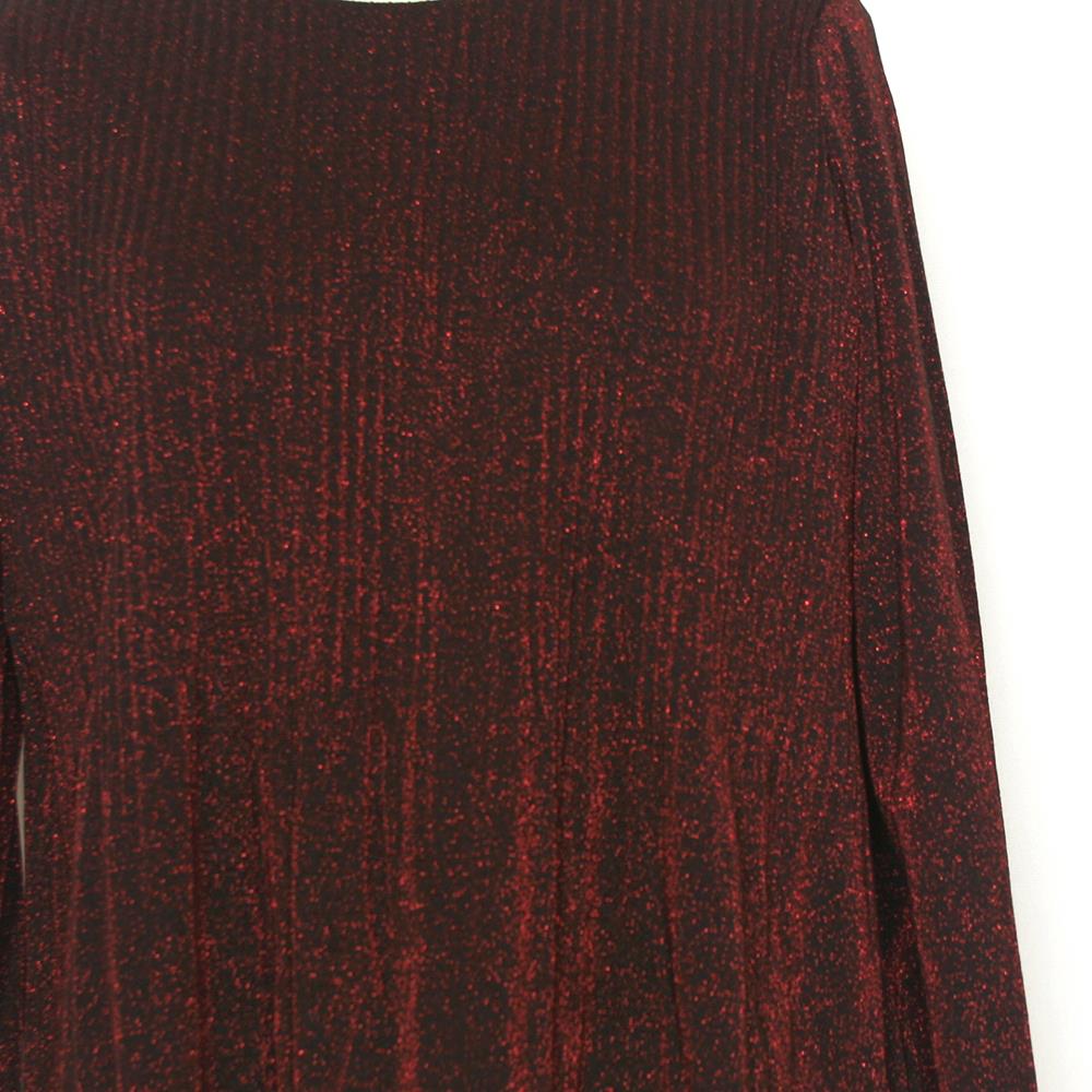 Camiseta lisa plisada en tejido elástico con hilo metálico para mujer