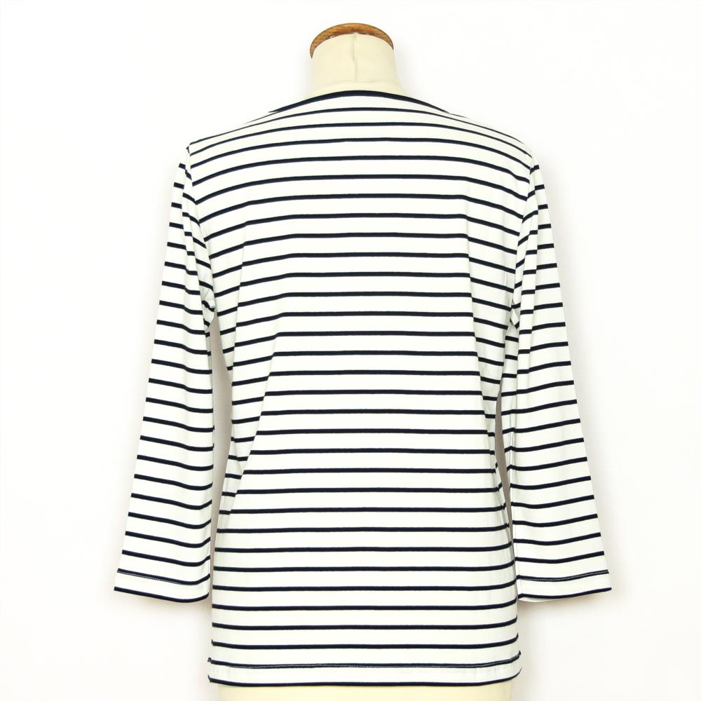 Camiseta de manga al codo en tejido de rayas para mujer