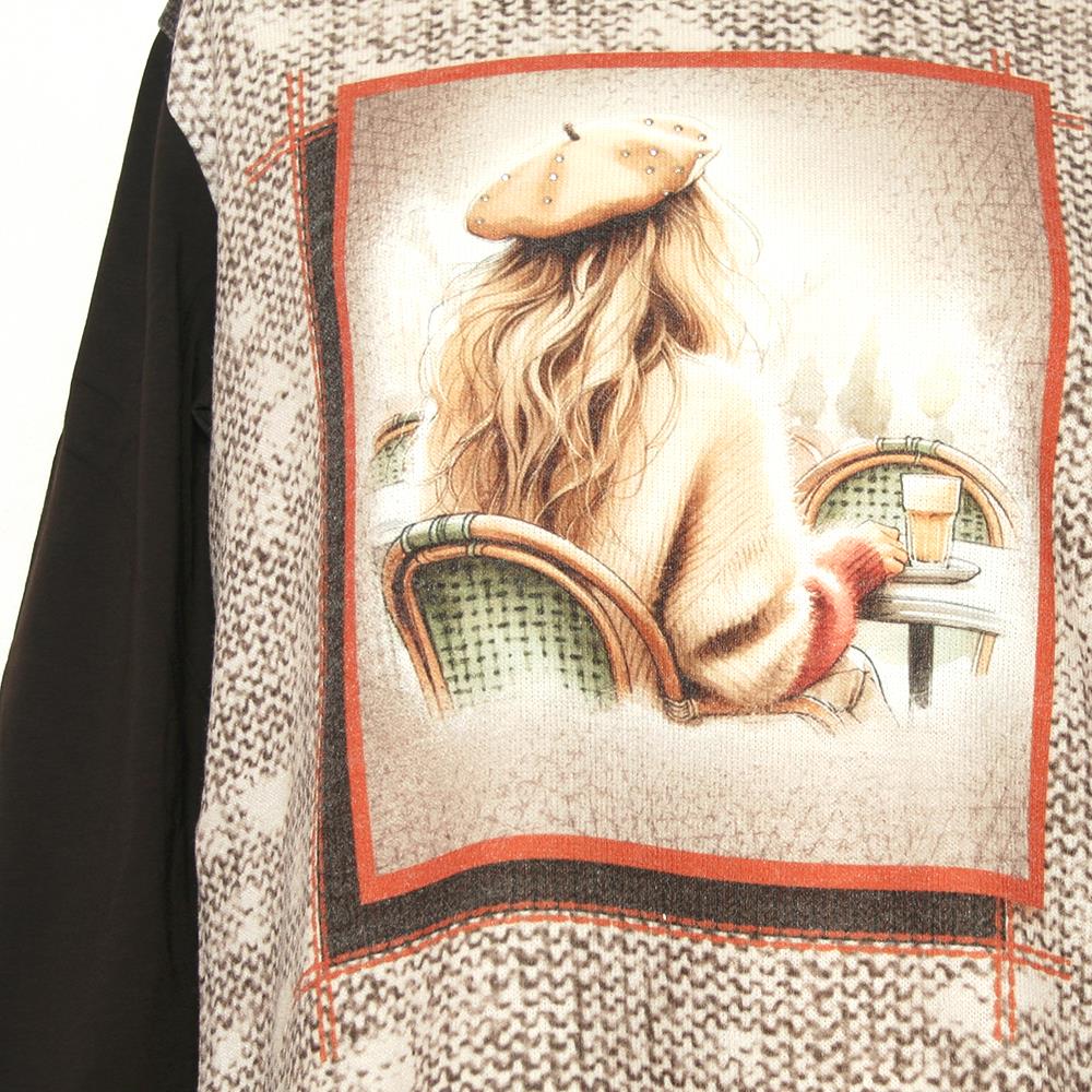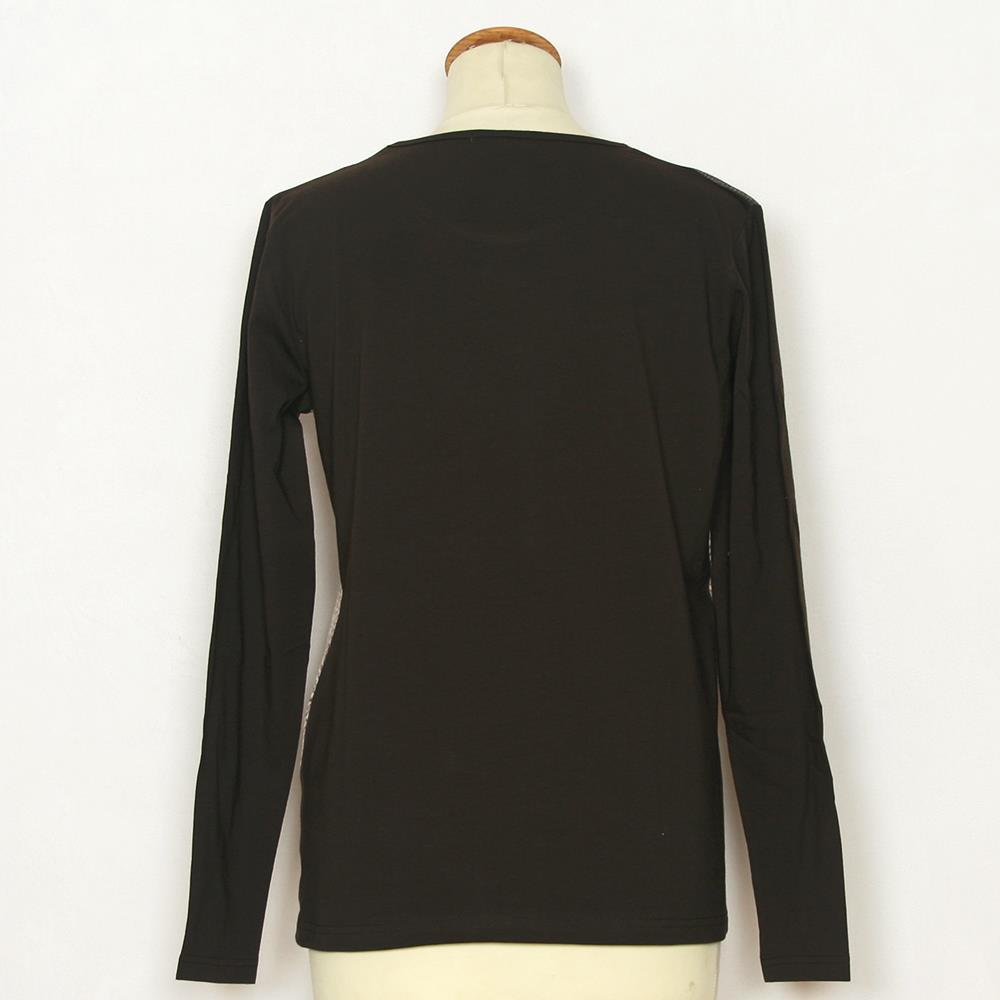 Camiseta de manga larga en tejido combinado y apliques para mujer