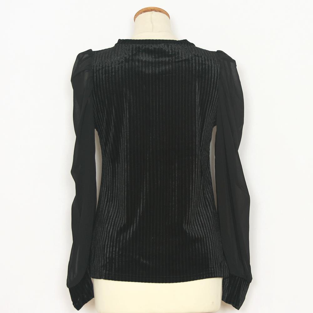 Jersey en tejido de terciopelo acanalado con mangas a contraste para mujer