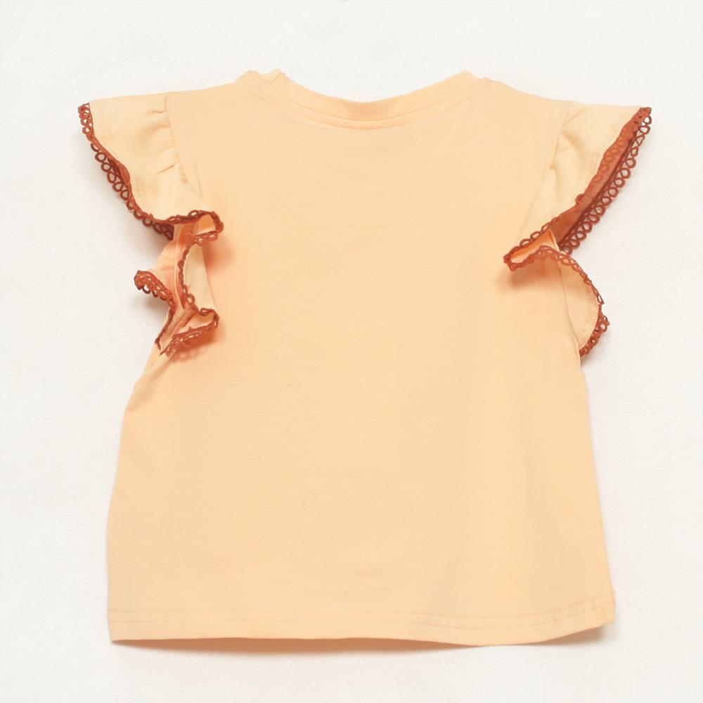 Camiseta de manga corta con manga volante y decoración frontal para niña