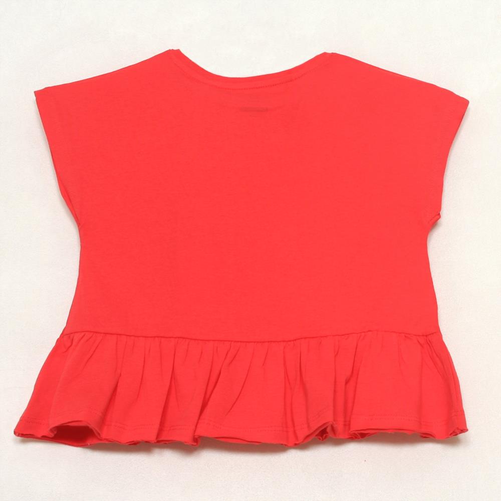 Camiseta de manga corta caída con volante en el bajo para niña