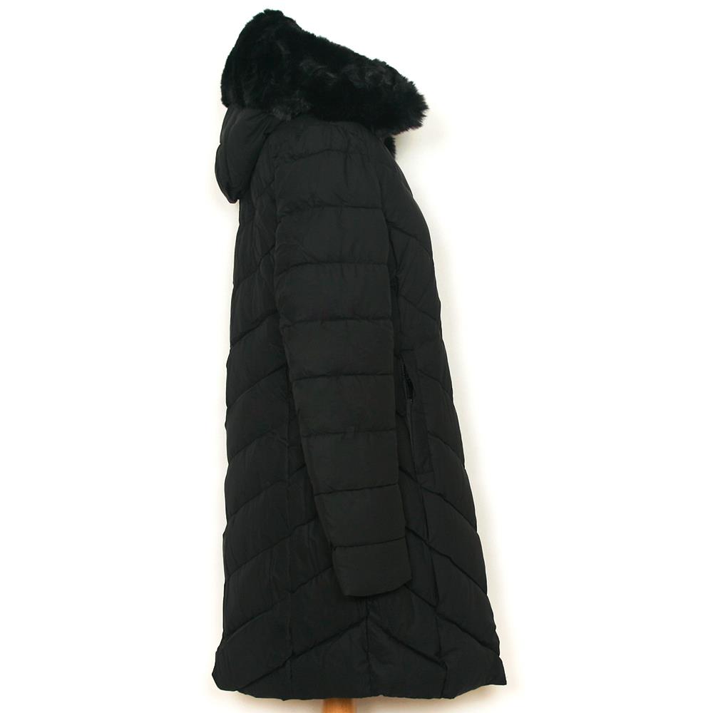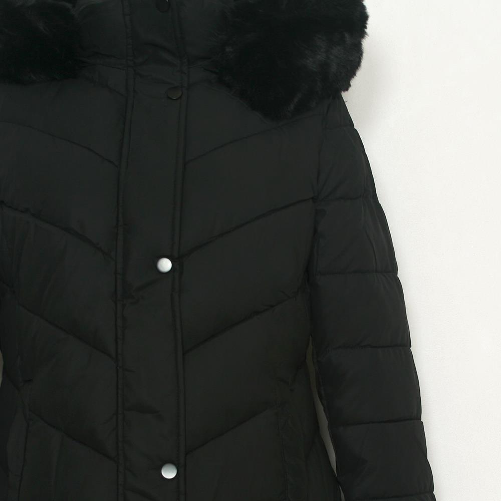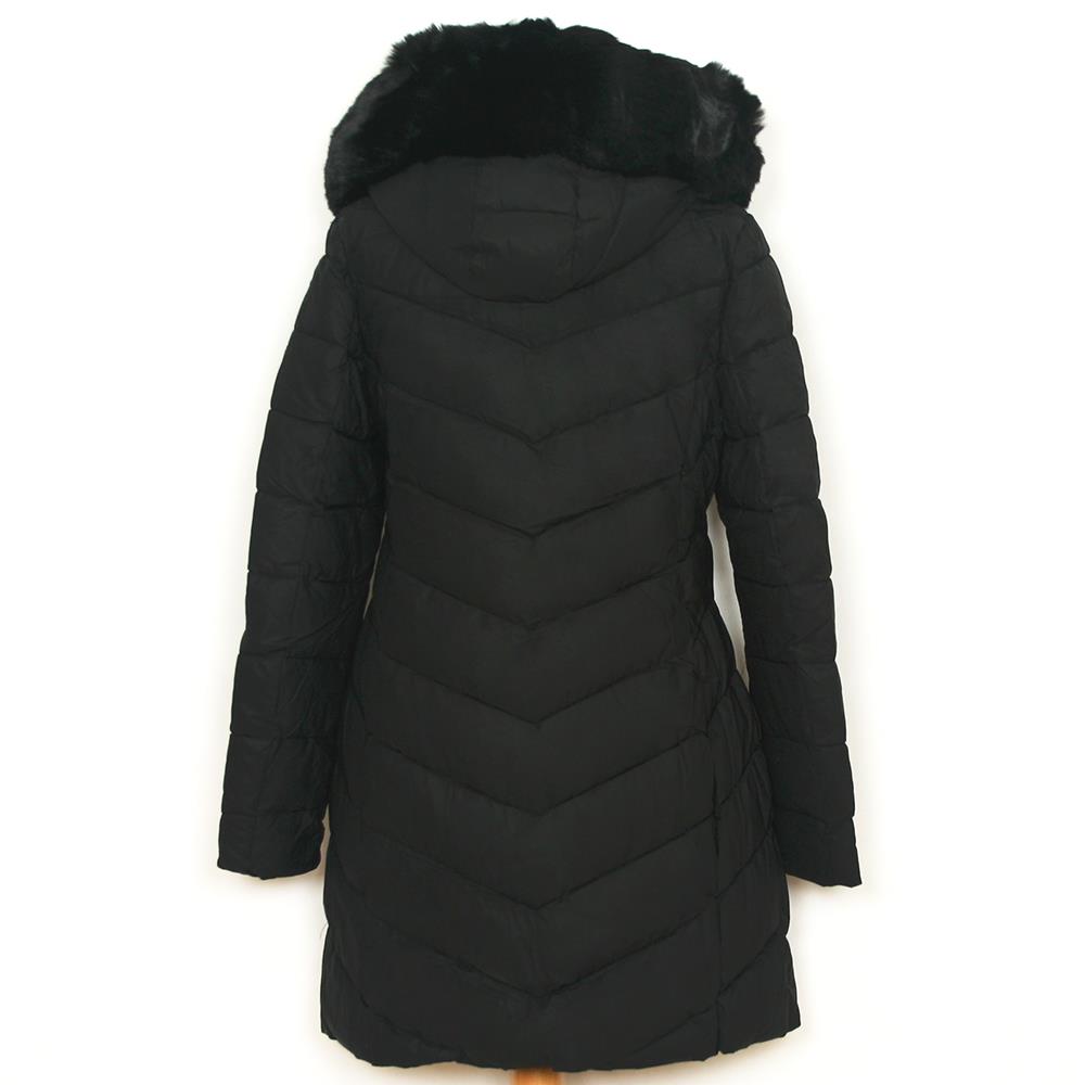 Abrigo acolchado con capucha desmontable y pelo sintético para mujer