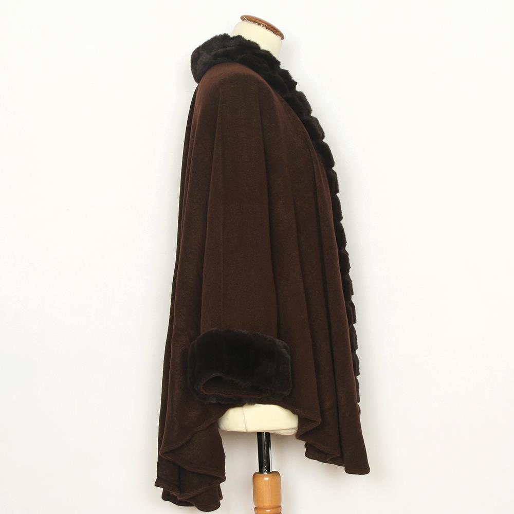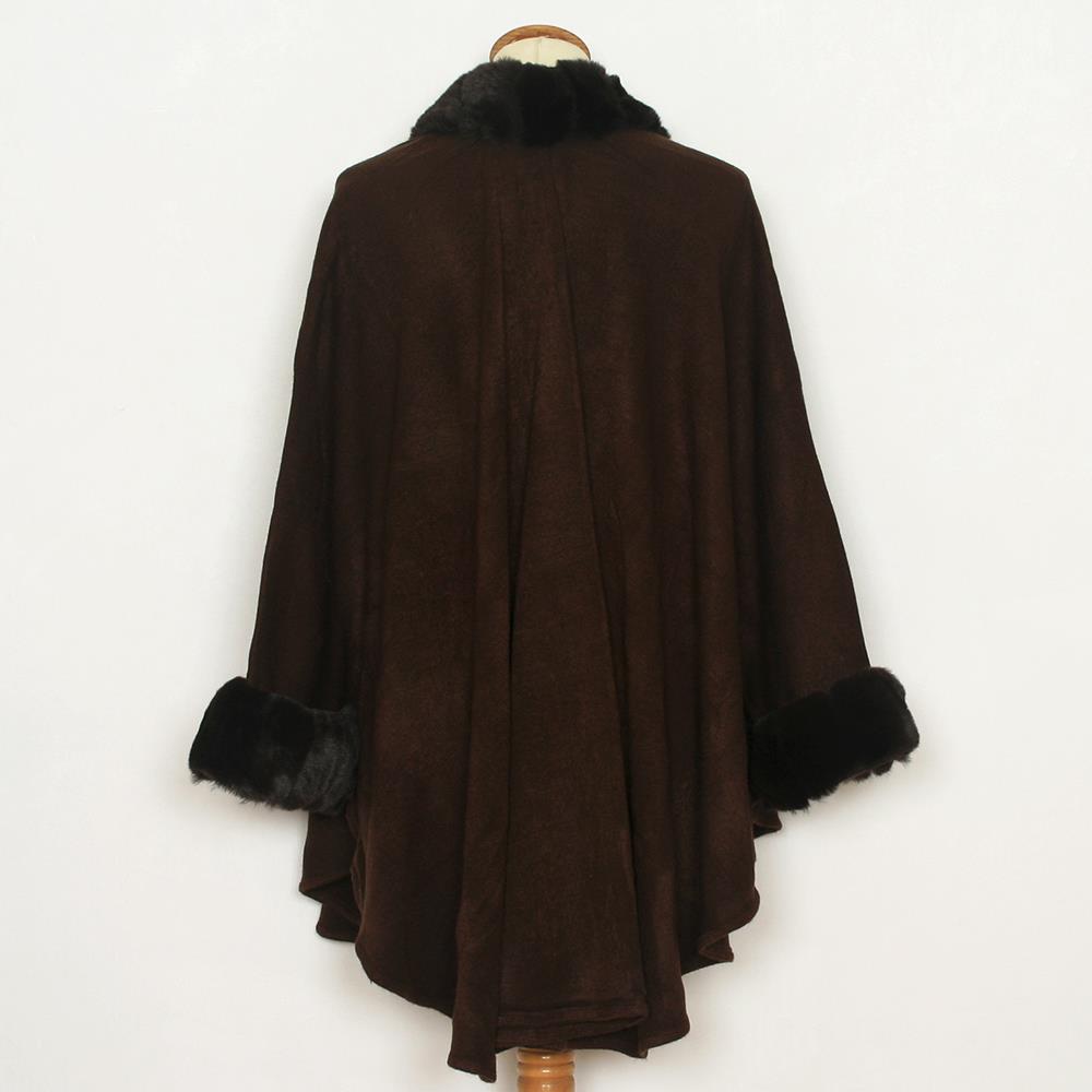 Capa lisa de punto con ribete de pelo sintético en cuello, frontal y mangas para mujer