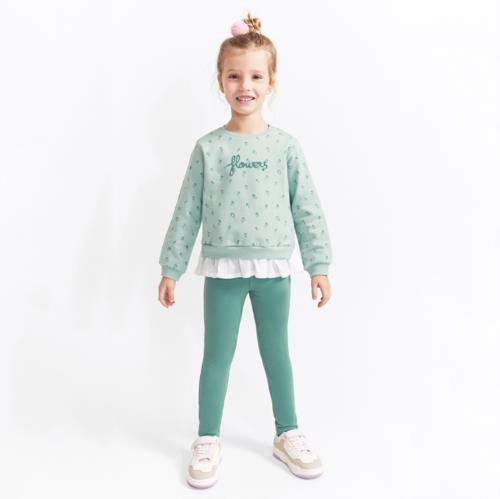 Conjunto con sudadera efecto doble prenda y estampado con motivo flore para niña