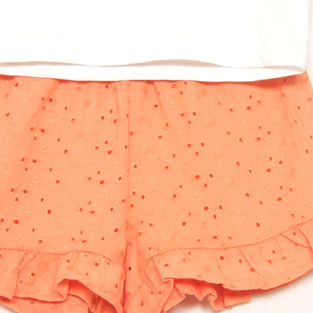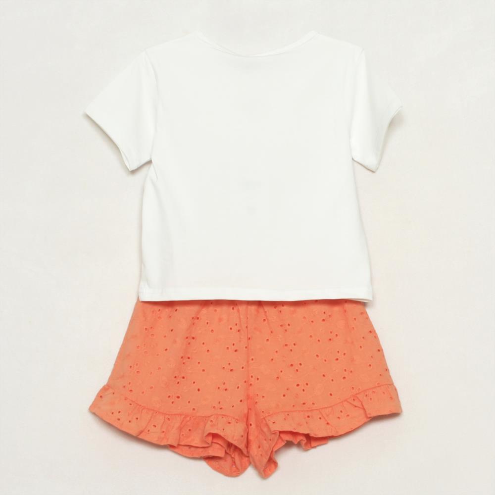 Conjunto de camiseta y pantalón corto en tejido calado para niña