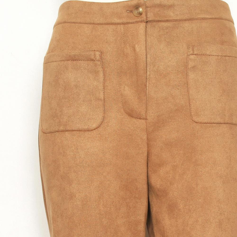 Pantalón en antelina elástica con bolsillos delanteros vistos para mujer