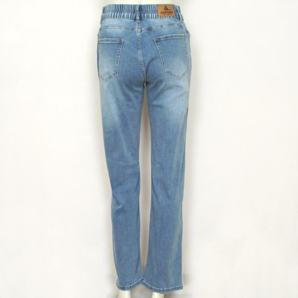 Pantalón tejano push up recto con elástico en la cintura para mujer