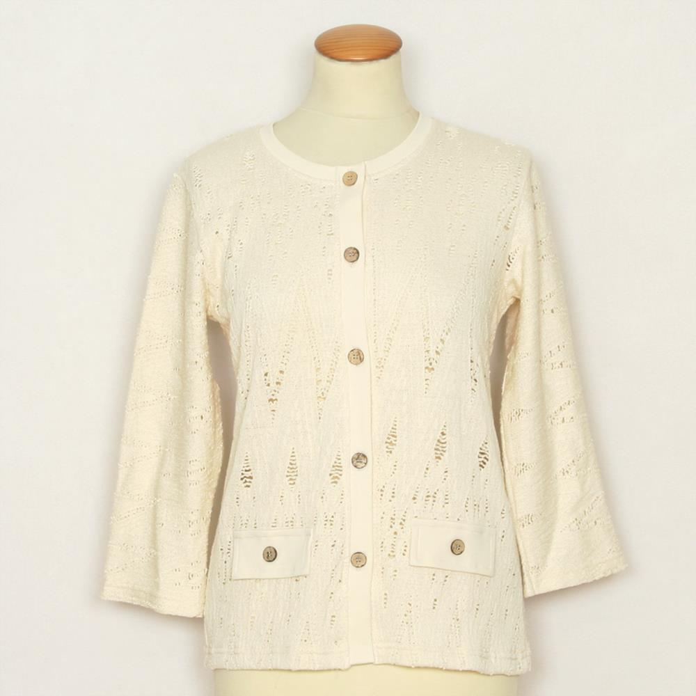 Chaqueta en tejido calado con bolsillos simulados para mujer