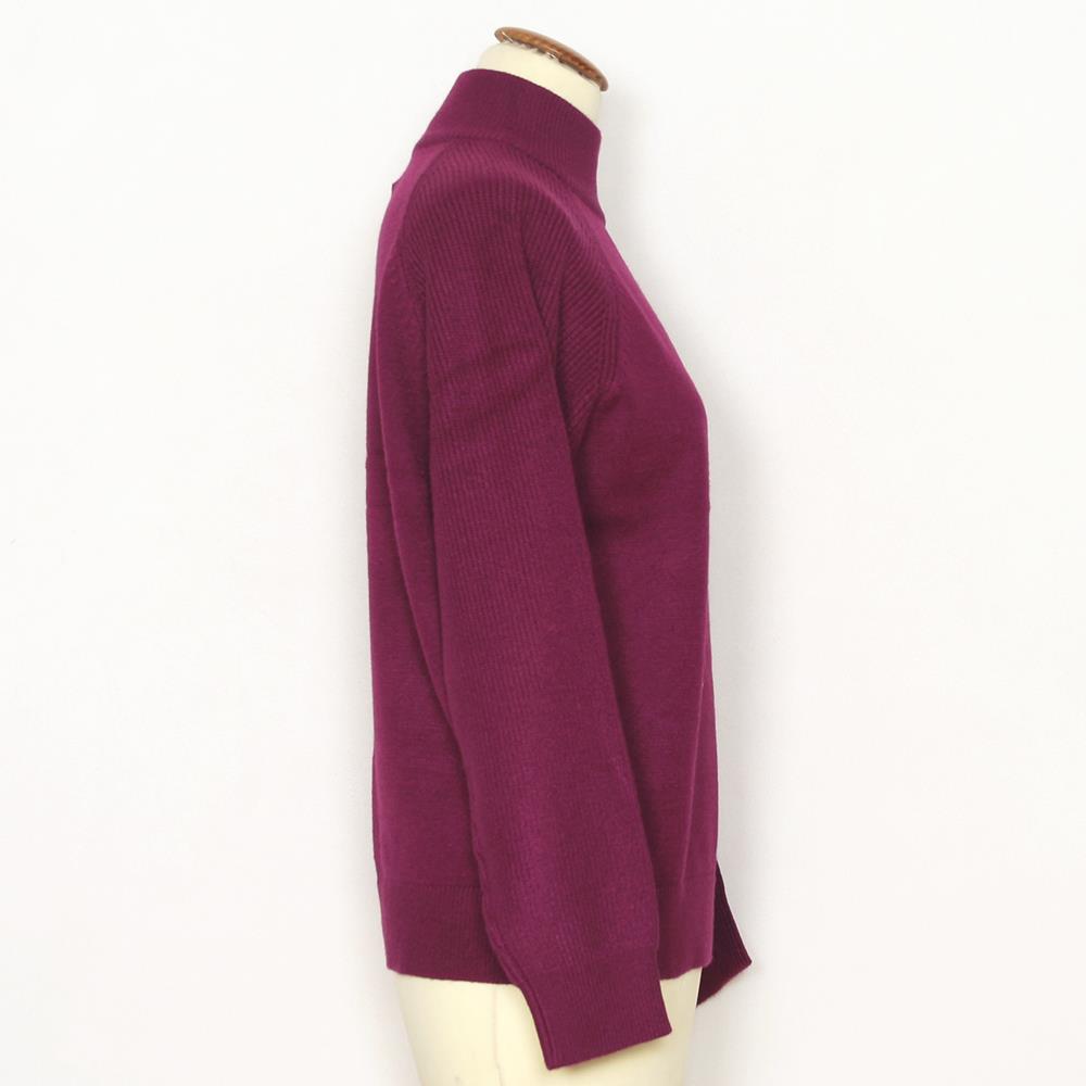 Jersey liso con manga en canalé y cuello chimenea para mujer