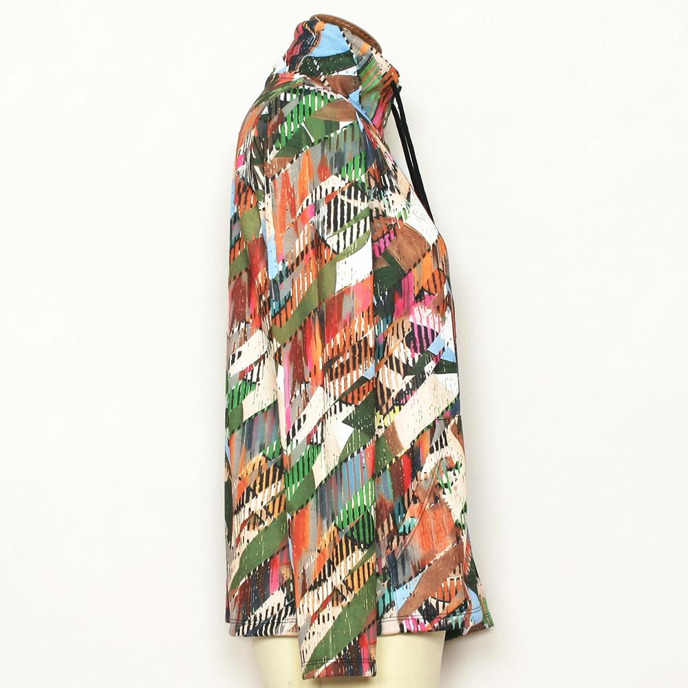 Sudadera abierta en tejido estampado con bolsillo canguro y cuello chimenea con cordón para mujer