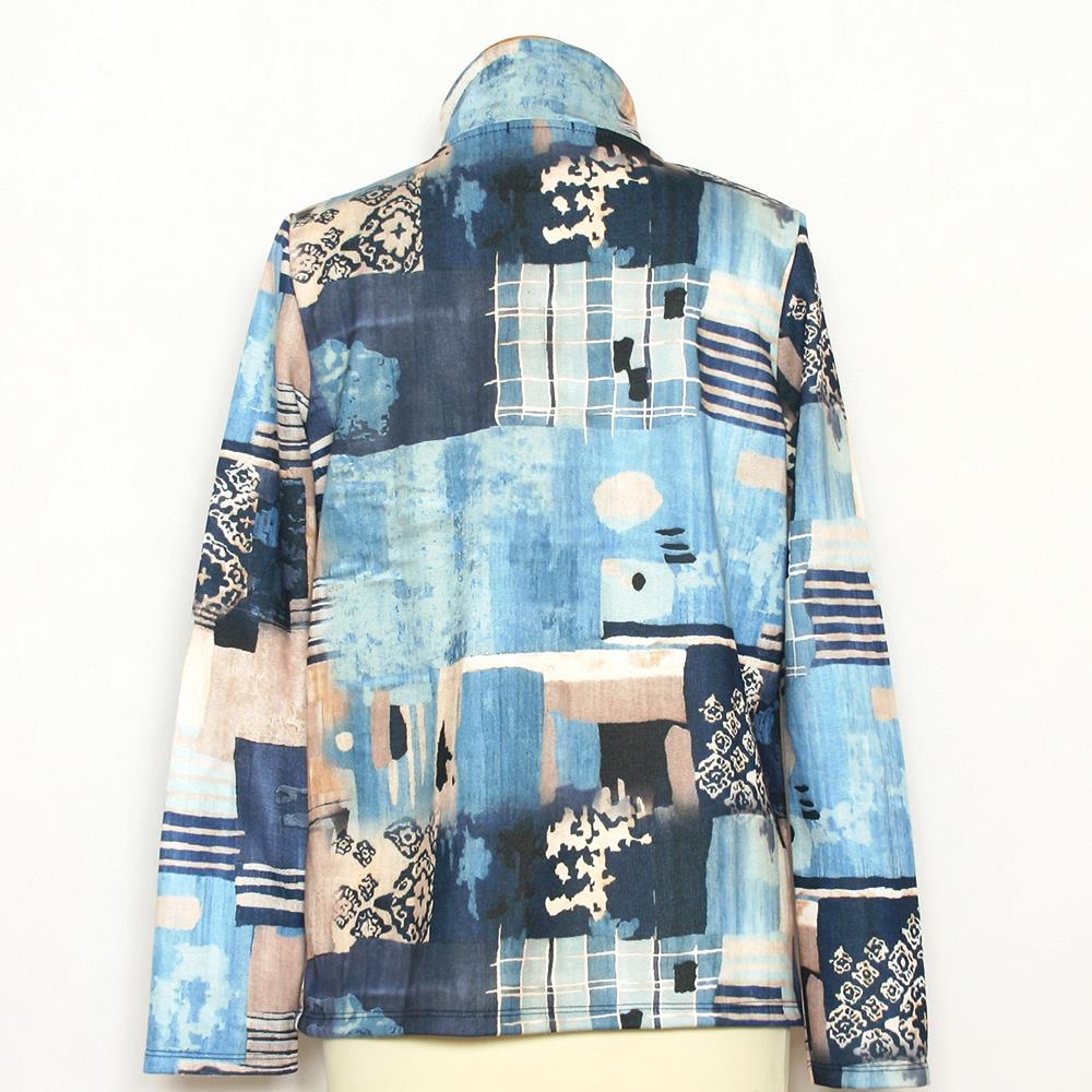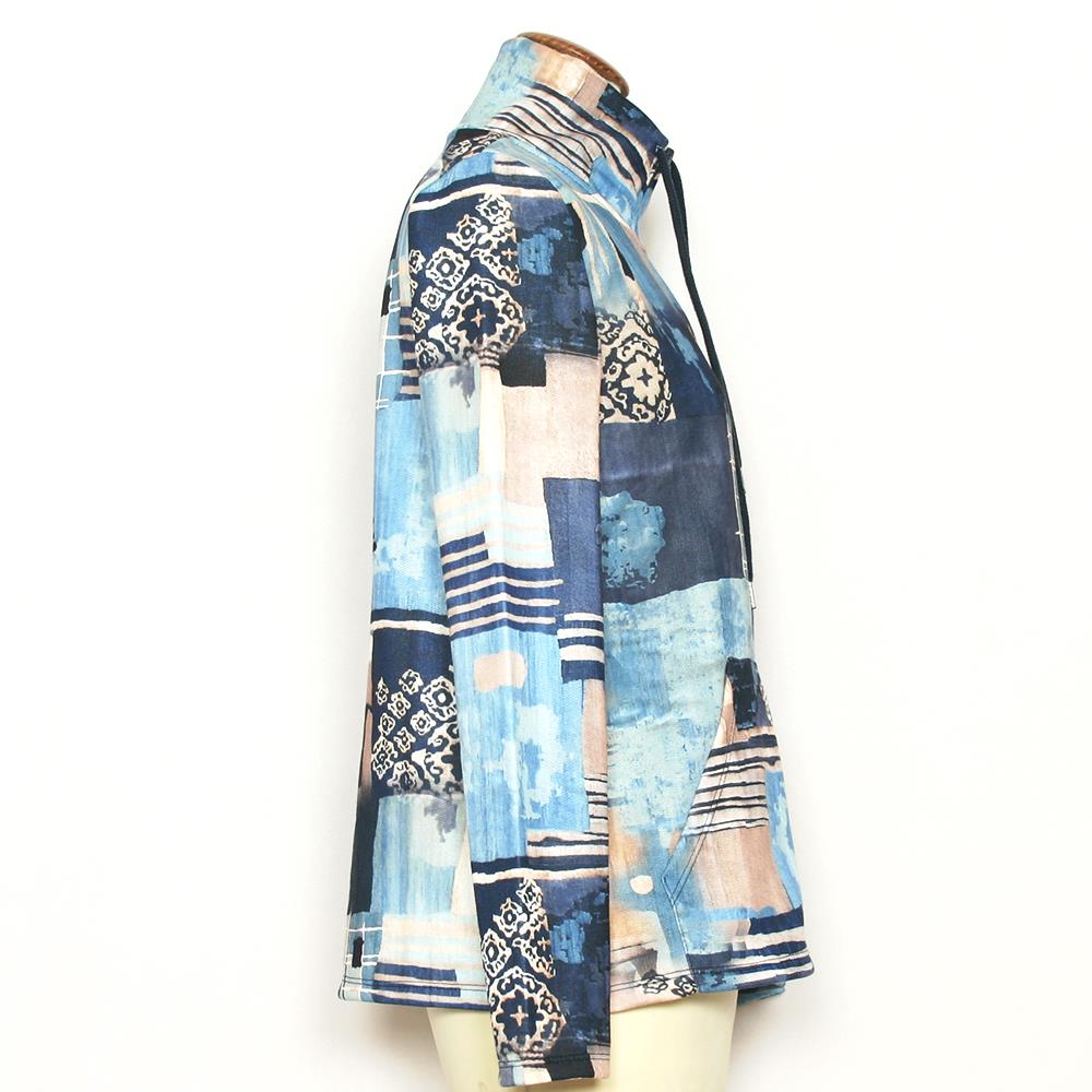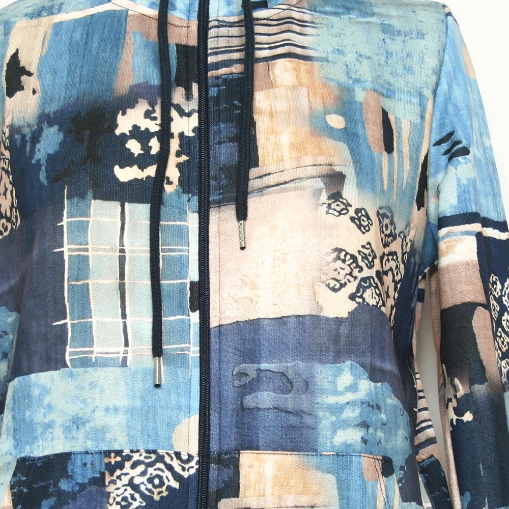Sudadera abierta en tejido estampado con bolsillo canguro y cuello chimenea con cordón para mujer