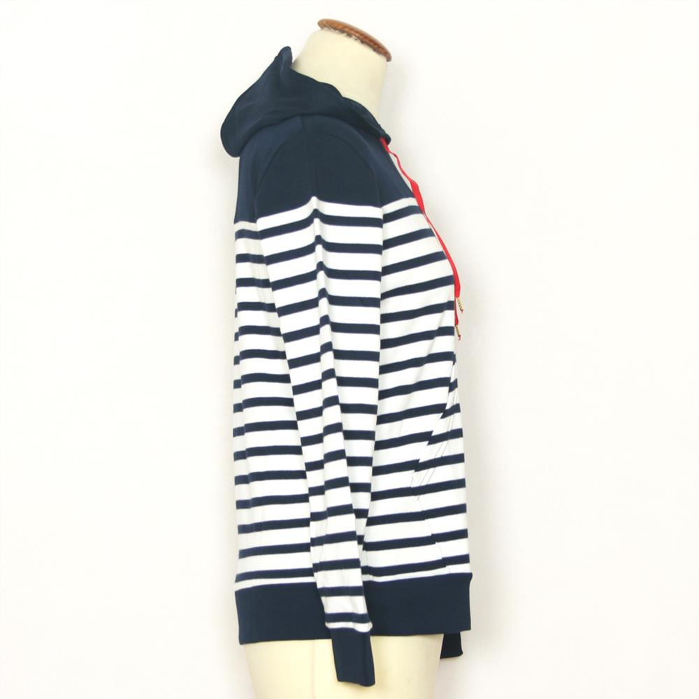 Sudadera en tejido de raya marinera estampada con capucha y cordón a contraste de mujer.
